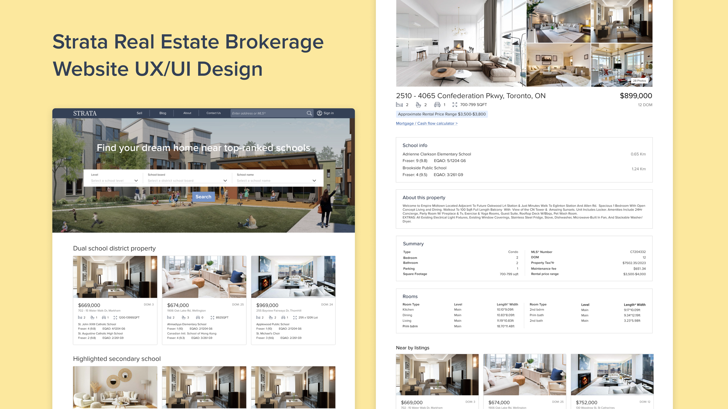 Additionally, both in the listing card and on the individual listing page, Strata will emphasize the school district associated with the property and showcase the potential income that is of interest to the user.