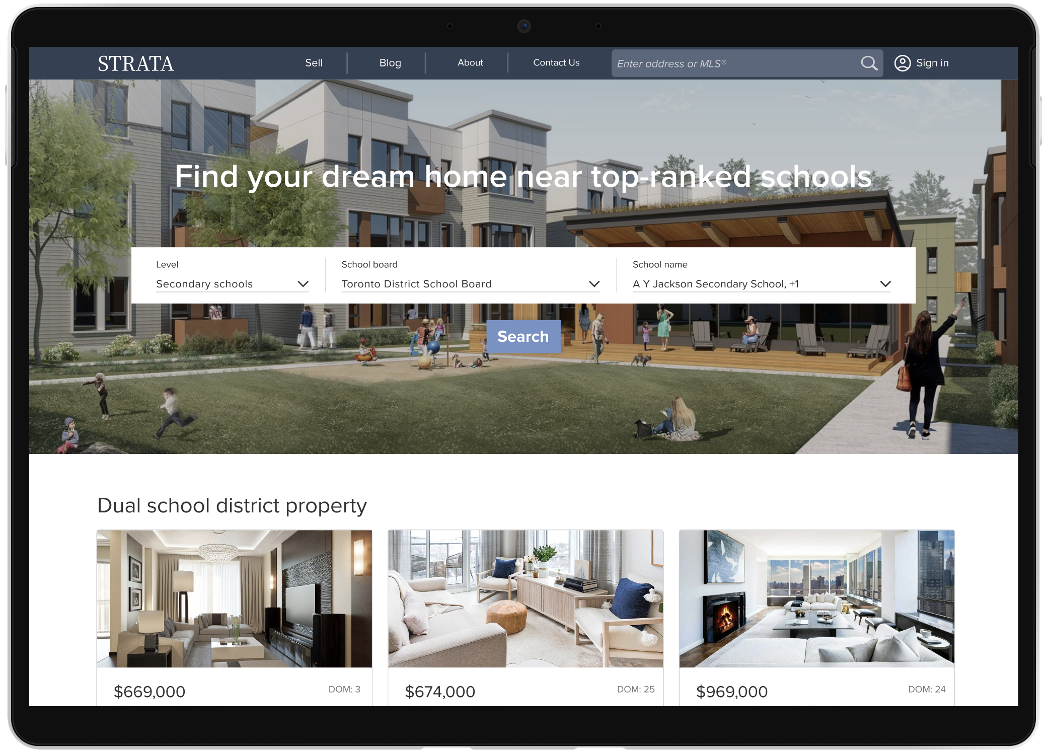 Since Strata specifically targets school district housing investors, this focus necessitates a customised approach where school district information becomes a primary search feature. This new process will allow users to select a school first and then view properties associated with that school. This customized search strategy provides a more straightforward and effective way to locate appropriate properties.
